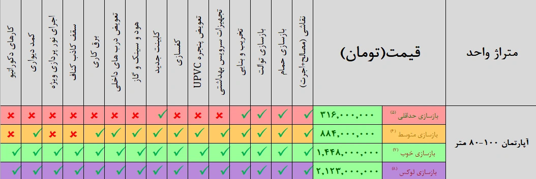 قیمت بازسازی ساختمان 80 الی 100 متری