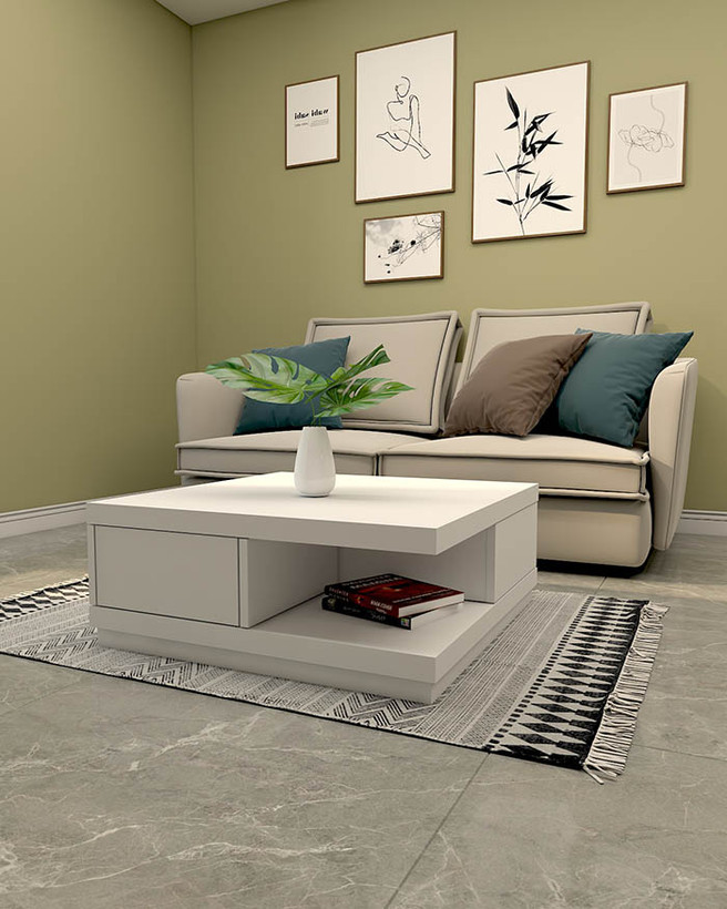 میز جلو مبلی سفید مینیمال دارای روکش ضد خش مدل C.T0014