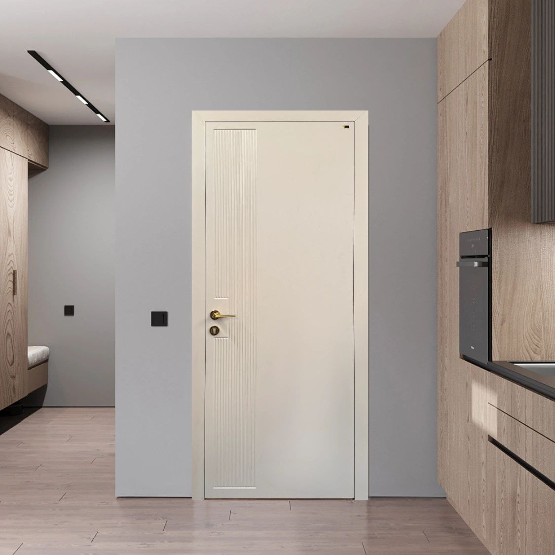 درب P‑384 فیداربا طراحی فلت و شیارهای متمرکز عمودی، انتخابی ایدهآل برای فضاهای مدرن و مینیمال است. این طراحی ظریف و منظم، بدون شلوغی بصری، حس وقار، نظم و یکپارچگی را به فضای داخلی منتقل میکند و بهراحتی با سبکهای مختلف دکوراسیون هماهنگ میشود.